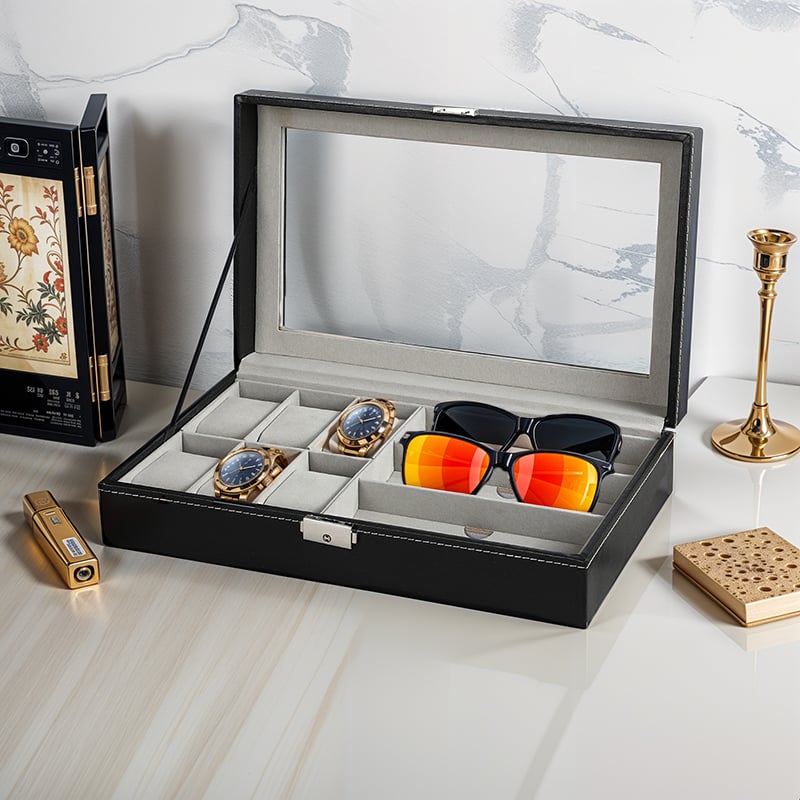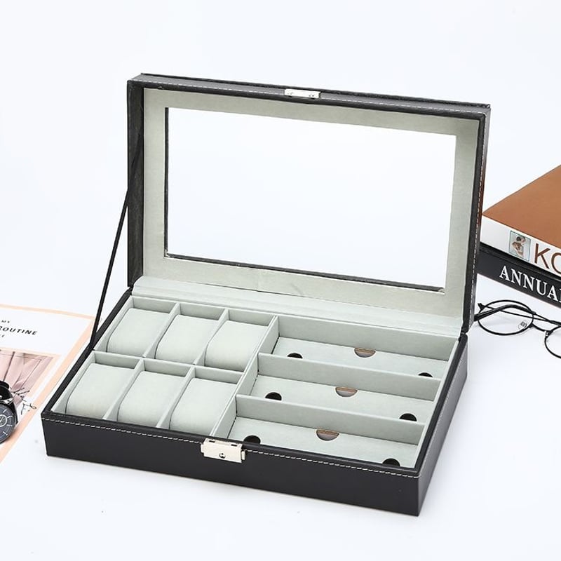 }👓🕶️👓 Mantén tus relojes y lentes perfectamente organizados y protegidos ante el polvo y humedad, de una forma compacta gracias a su estructura y divisiones hechas con materiales de gran calidad.