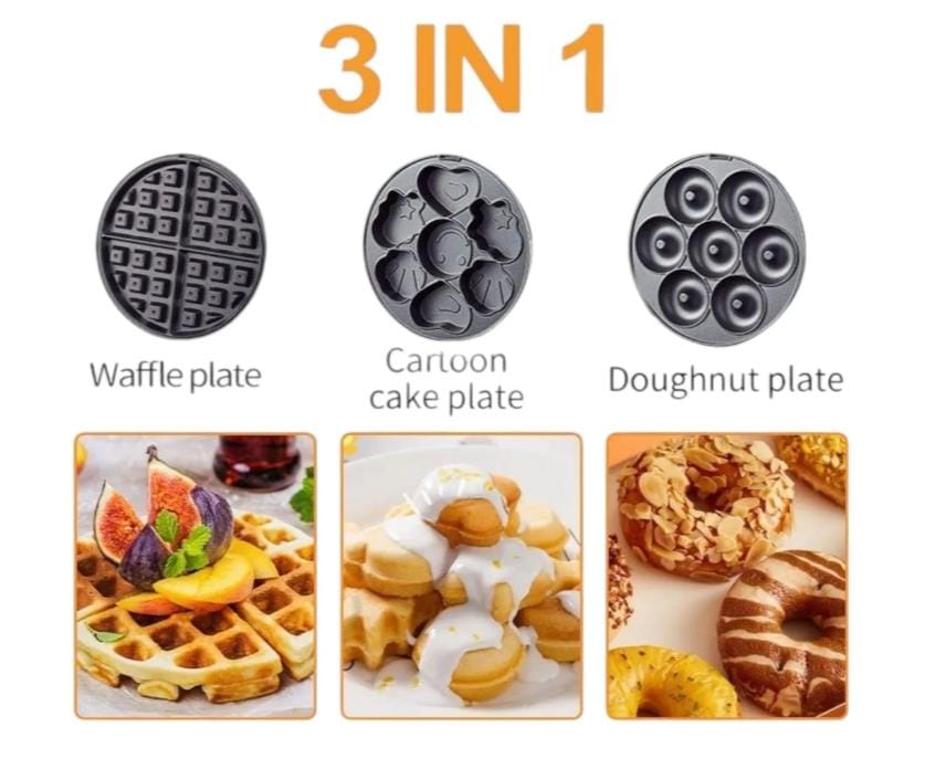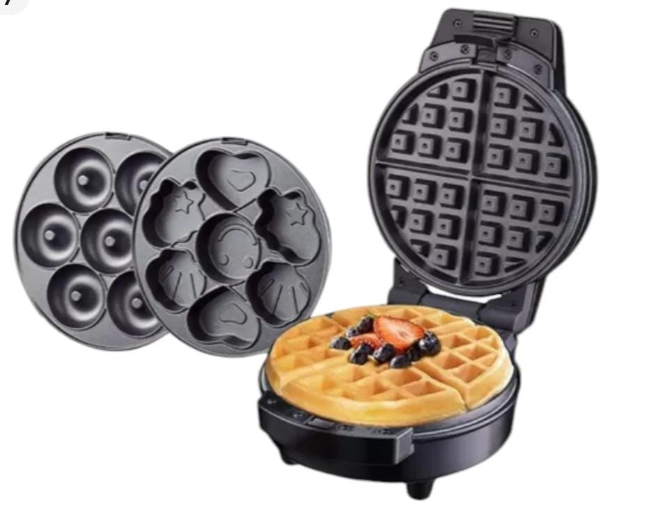 Elementos incluidos: 1 maquina 3 en 1 con 3 placas intercambiables Waflles, Mini donas, Kawaii